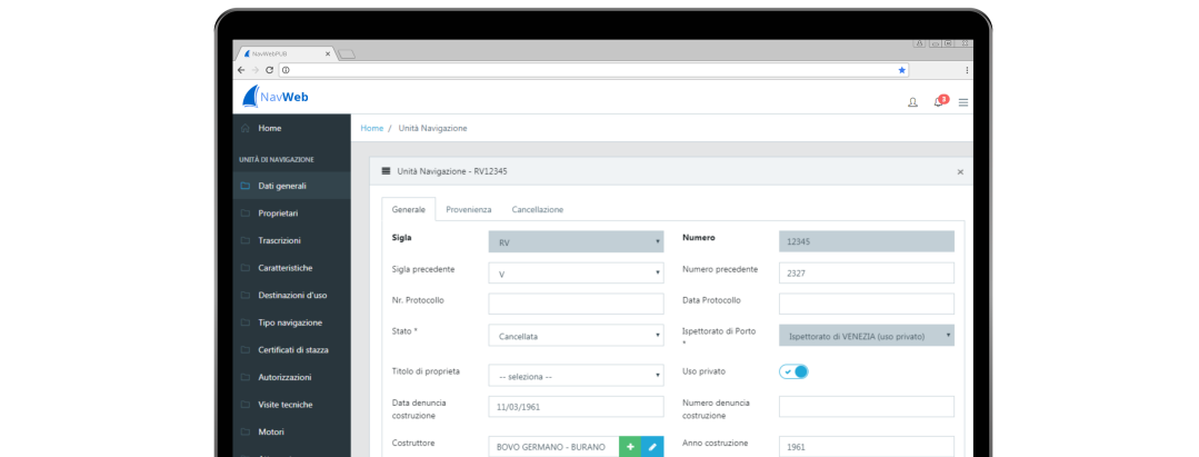 Con il portale Nav Web sarà possibile gestire i seguenti dati relativi ad un’unità di navigazione: